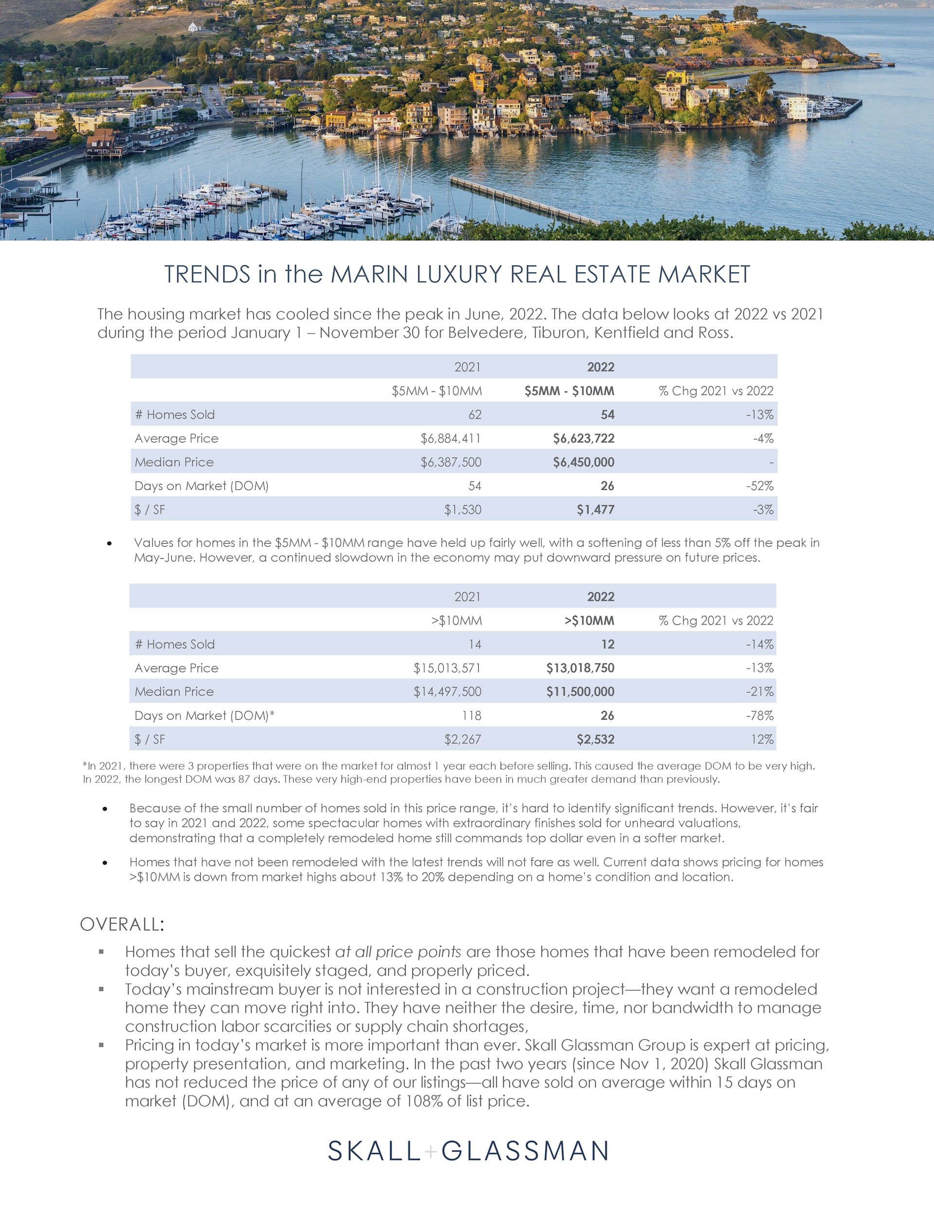 2022 vs. 2021 SALES COMPARISON: MARIN'S LUXURY MARKET