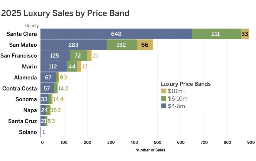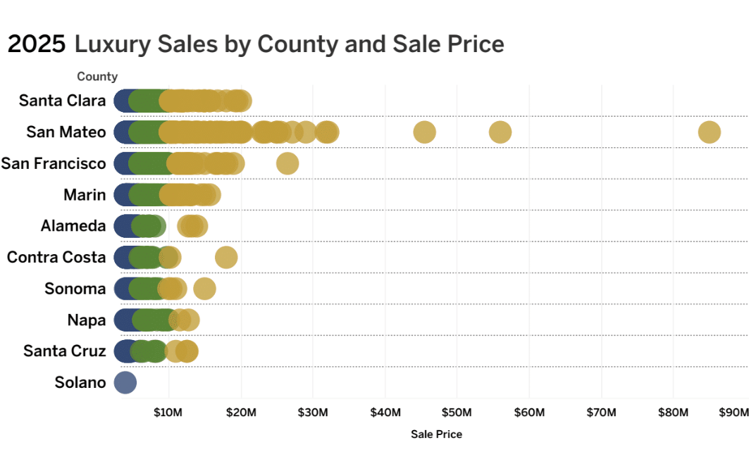 The 2025 report also underscores the continued vitality of the luxury segment. High-end sales — including multiple transactions north of $20 million — highlight Bay Area real estate’s enduring allure for affluent buyers. Luxury sales were particularly concentrated in markets like Atherton, Woodside, and San Francisco’s most iconic neighborhoods.