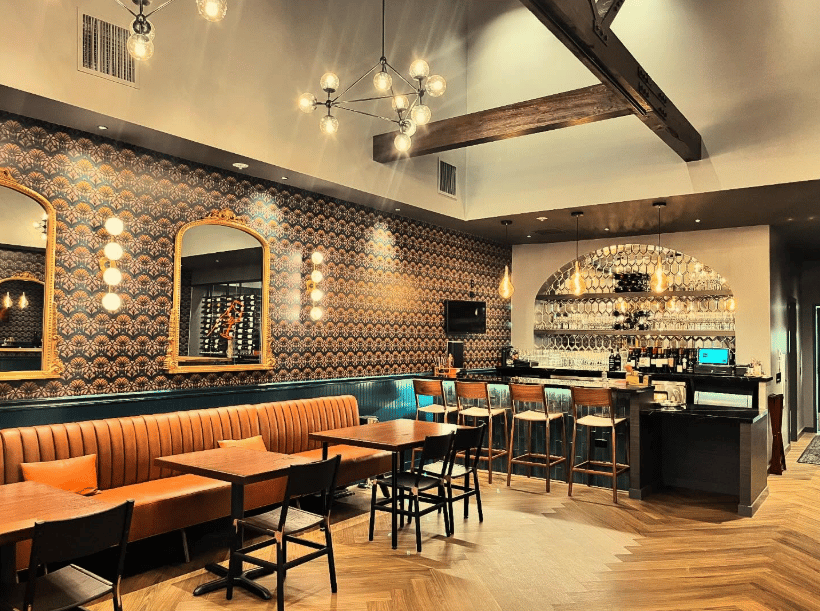 The newly updated space includes an all-new kitchen and wood-fired oven serving dishes such as pizza, oven-roasted whole branzino, and grass-fed beef and pork meatballs, with wines available by the glass, bottle, or flight.
